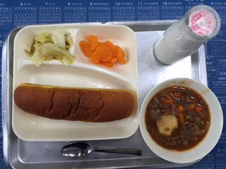 本日のメニューは、「ビーフシチュー」、「キャベツのピクロス」、「みかん」です。