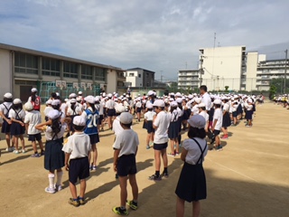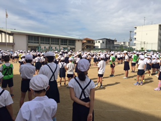 曲の初めの部分を流し、縦割り班で、曲名を3択から答えます。
