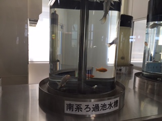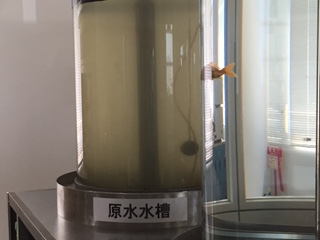 淀川の原水(左)が、魚が泳ぐことができるくらいきれいになりました。