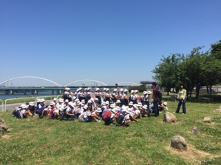 遊び終わったら、スタッフにお礼を言って、お昼をとるため、淀川河川敷に移動します。