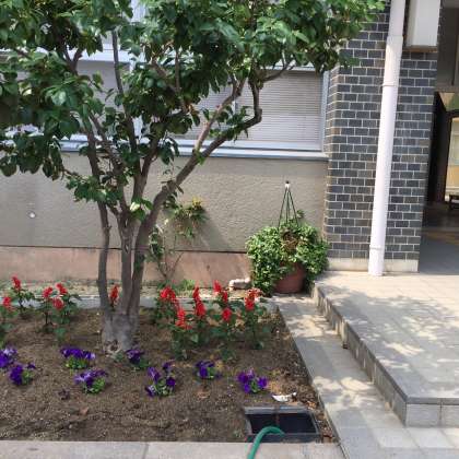 ブルーは写真の上段(校舎玄関向かって左 サルビア赤と同じ場所)