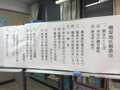 小学校からは、PTA会長、校長、教頭、生活指導担当教員をはじめ6人の教員で参加しました。地活協会長の話をはじめ、鶴見警察少年係長から非行防止の話をいただきました。家庭、地域の人たちと連携を図り、子どもを育成したいと思います。