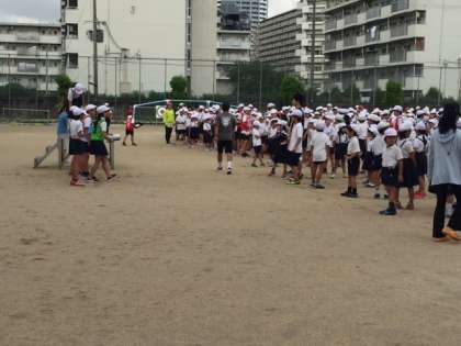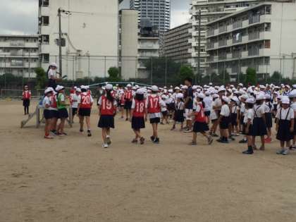 本日の児童集会は、ペアで行う「増えるオニ」です。