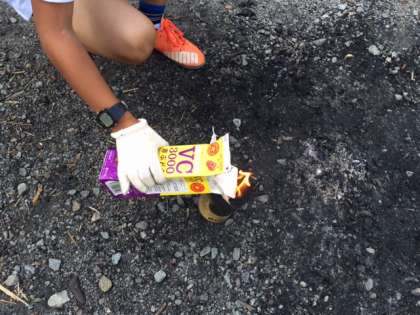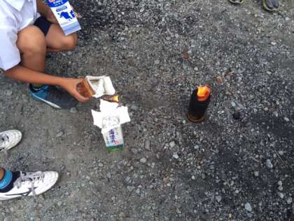 牛乳パックに火をつけます。