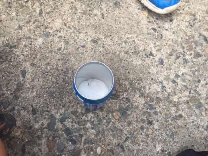 まず、缶に砂糖を入れます。