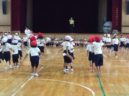 絵本の内容を、音楽に合わせ、リズムをとり、体で表現しています。