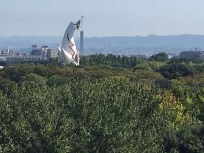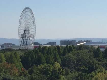 太陽の塔、観覧車が見えます。