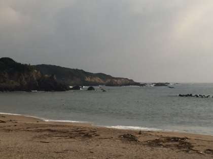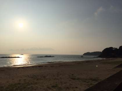この後、7時30分に砂浜に集まり、朝の会を行います。