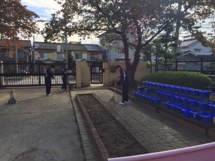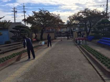 職場体験学習をしている中学生は、児童集会のあと清掃活動をしています。