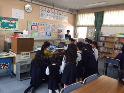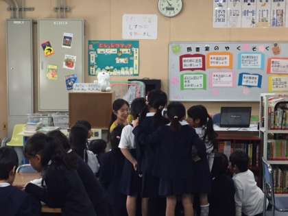 学校図書館補助員である 谷山美紀さんによる図書の読み聞かせを行いました。