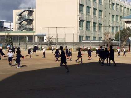 寒さに関係なく、たくさんの子どもが遊んでいます。