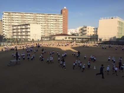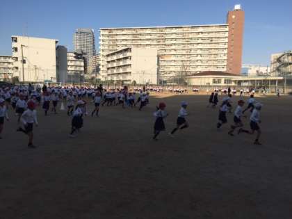 小学1年生から3年生までの児童が、朝の時間に、「かけあしタイム」を行いました。