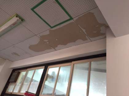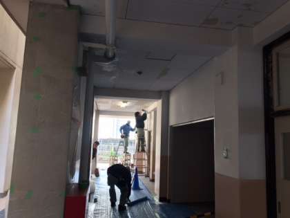 校内の安全点検をするうえで、廊下天井の塗装が剥がれかかっていました。