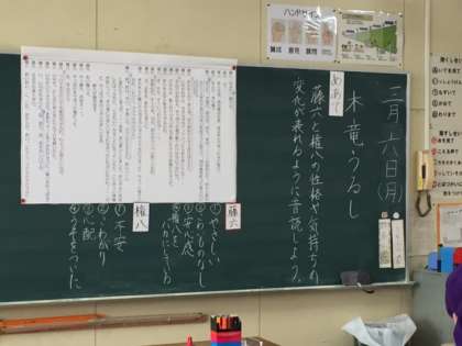 めあて:藤六と権八の性格や気持ちの変化が表れるよう音読しよう。