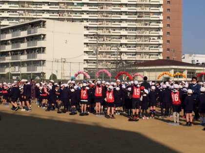 たてわり班で運動場に集合します。