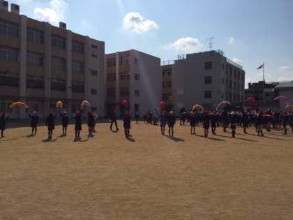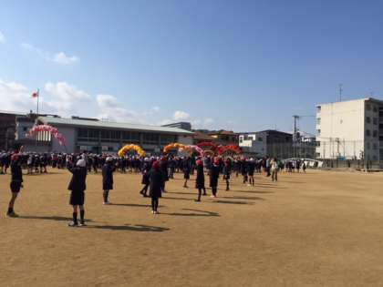 最後に6年生が、花のアーチのトンネルを通って退場します。