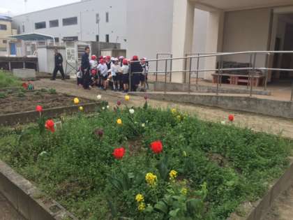校内で草花の観察を行っています。
