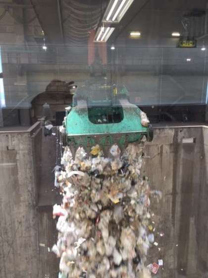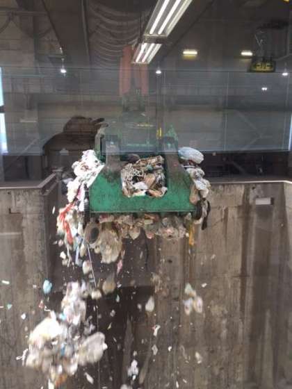 見学している横堤小学校の児童のために、目の前でゴミを落としてくれました。
