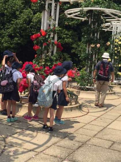 バラの花に囲まれ、心優しい子どもに育ってください。