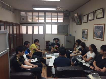 10年目の教員がメンターとして、9人の若手教員が校長室で研修をしました。