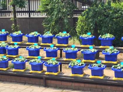 子どもたちが育てている「アサガオ」の様子です。