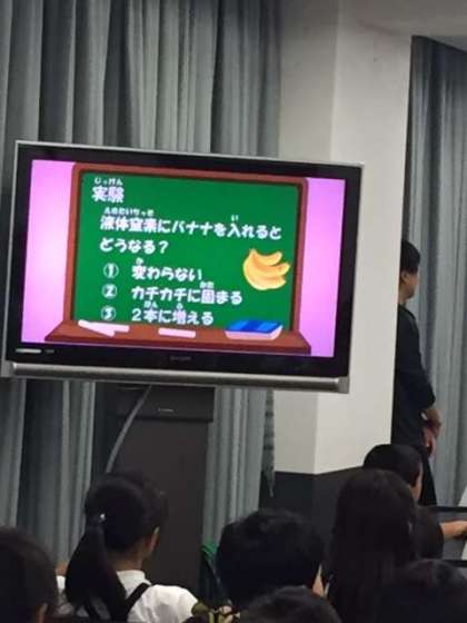 液体窒素に、バナナを入れます。
