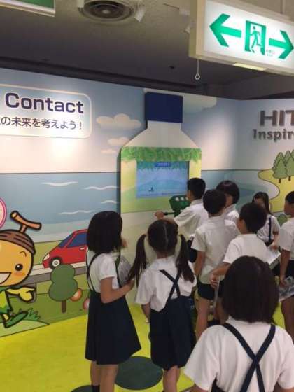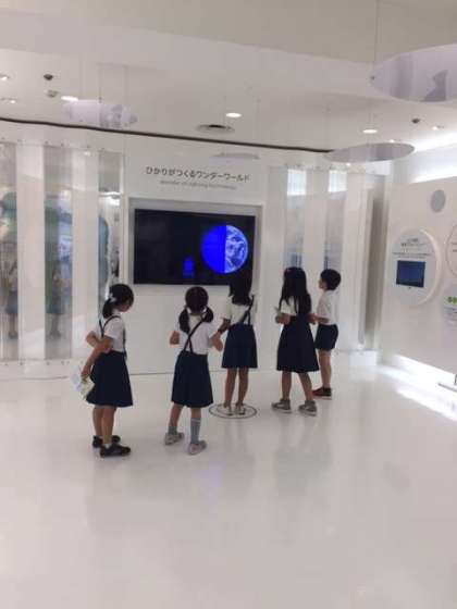 自転車をこいで、ゲーム感覚で科学に触れています。