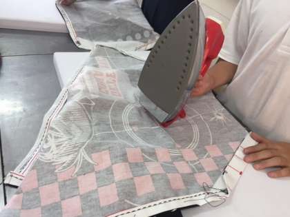 初めて、ミシンやアイロンを使う児童が多いです。