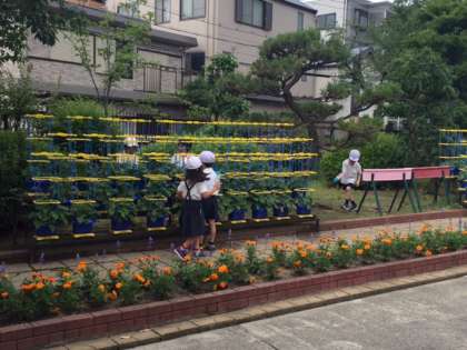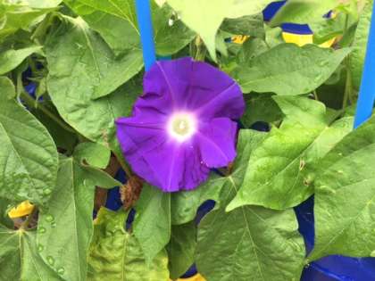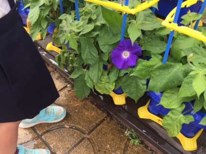 子どもたちが心をこめて育てている「アサガオ」の花が咲きました。