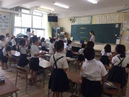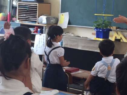 1年生が育てている「アサガオ」について、教室で学習しています。