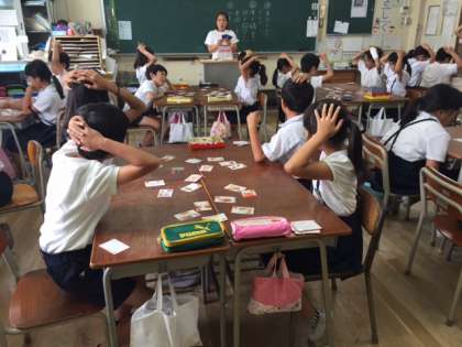 カルタをすることで、ゲーム感覚で言語活動をしてください。