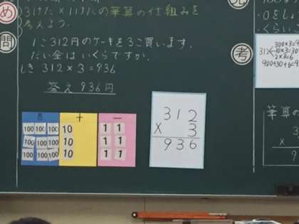 子どもたちは、「2けた×1けた」のかけ算に続いての学習となります。