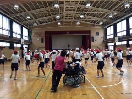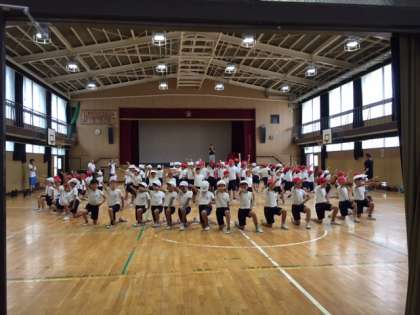 音楽と児童の動きに注目してください。