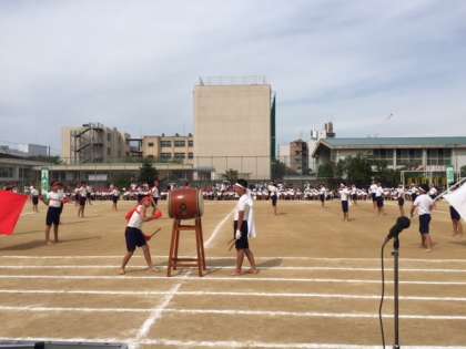 運動会を盛り上げるため、大空に向って大きな声で応援しよう!