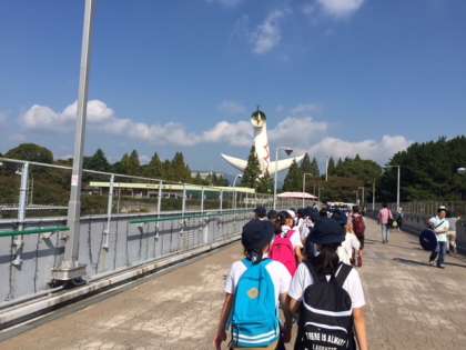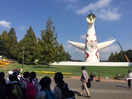 太陽の塔が、横堤の子どもたちを歓迎しています。