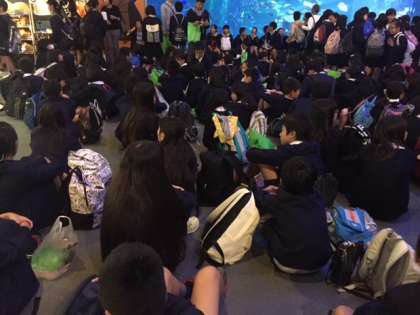 12時45分 水族館の体験を終了して、学校に戻ります。