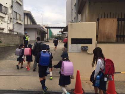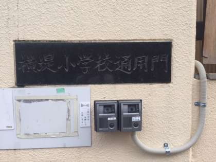 児童は、南側の西門(通用門)から登校しています。インターホンも、西門(通用門)に取り付けました。