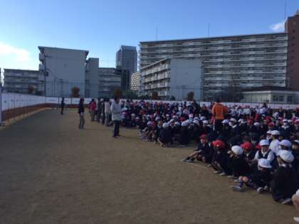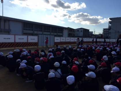 一旦、グランドに集合し点呼をします。