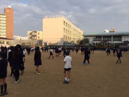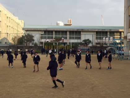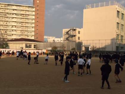 運動場は狭くなりましたが、子どもたちは元気いっぱいです。