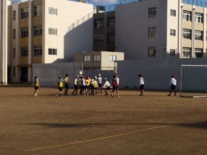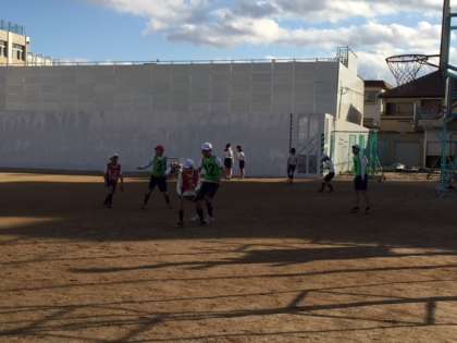 グランドで、「サッカー」と「バスケット」を行っています。
