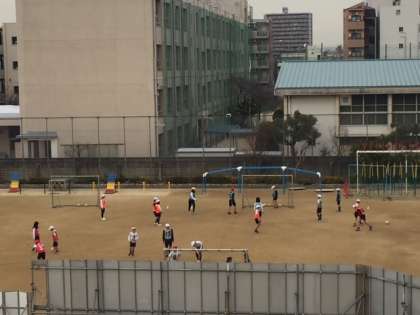運動場は狭くなりましたが、子どもたちは一生懸命に取り組んでいます。