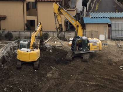 下2枚の画像は、講堂を解体した別の日の様子です。