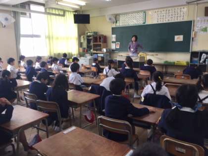 8時30分に教室にて、朝のあいさつ「おはようございます!」をしています。