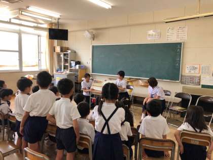 鶴見図書館の指導で、スキルトレーニングを行った横堤中学校の生徒が来校し、2年生の児童に読み聞かせをしました。