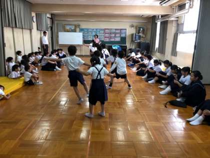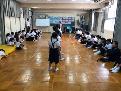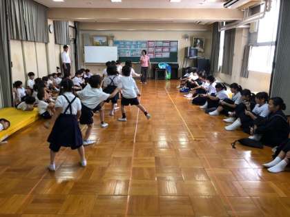 子どもたちは中学生の指導のもと、一生懸命に行っています。