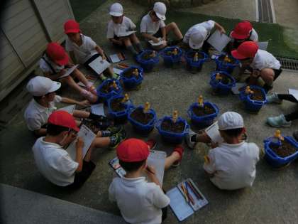 昨日は、その芽が出た様子を観察し、絵をかきました。