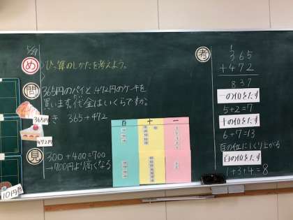 目標「3位数+3位数の筆算の仕方を理解し、その計算をすることができる。」