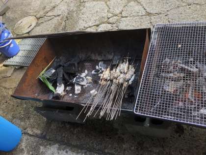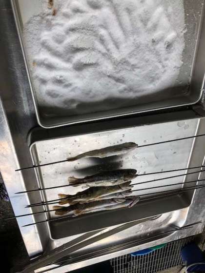 つかまえた魚を焼きます。