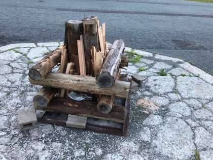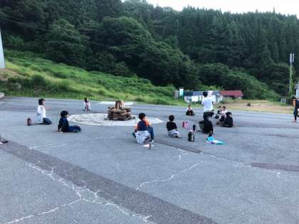 キャンプファイヤーの準備をしています。