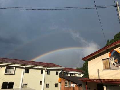はっきりと、きれいな虹が見えます。しかも、二重の虹です。